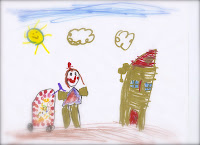 My 5 year old daughter is in kindergarten. Here are two of her drawings. We have kept all her drawings since she was 3 years old. I love all of them, but these are two of my favorites.